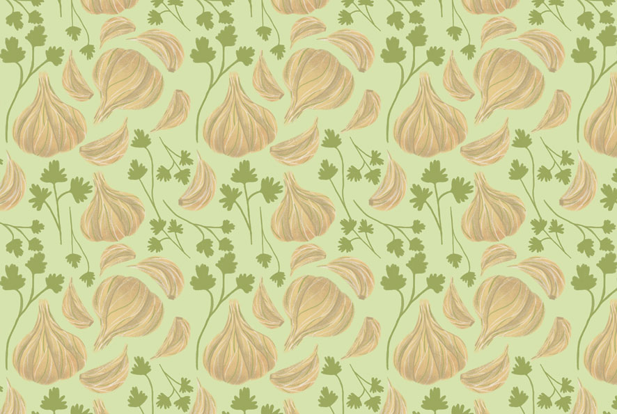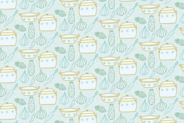 Illustrations and repeat patterns for a series of three books about the culinary tradition of the Mexican state of San Luis Potosí, and the rural villages of Cerritos and Huehuetlán, located in the same state. The books collect these recipes in an effort to preserve the intangible cultural heritage that has been keept by its people.